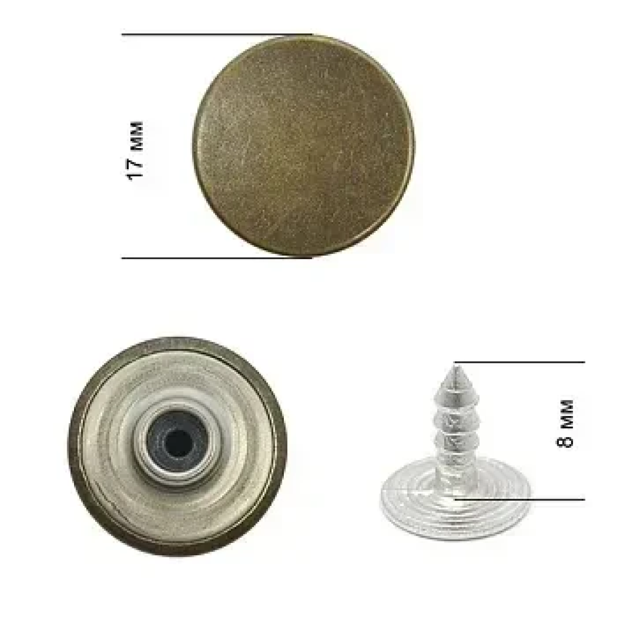 Гудзик для джинсів нержавіючий 17мм гладкий (Антик) 50 шт
