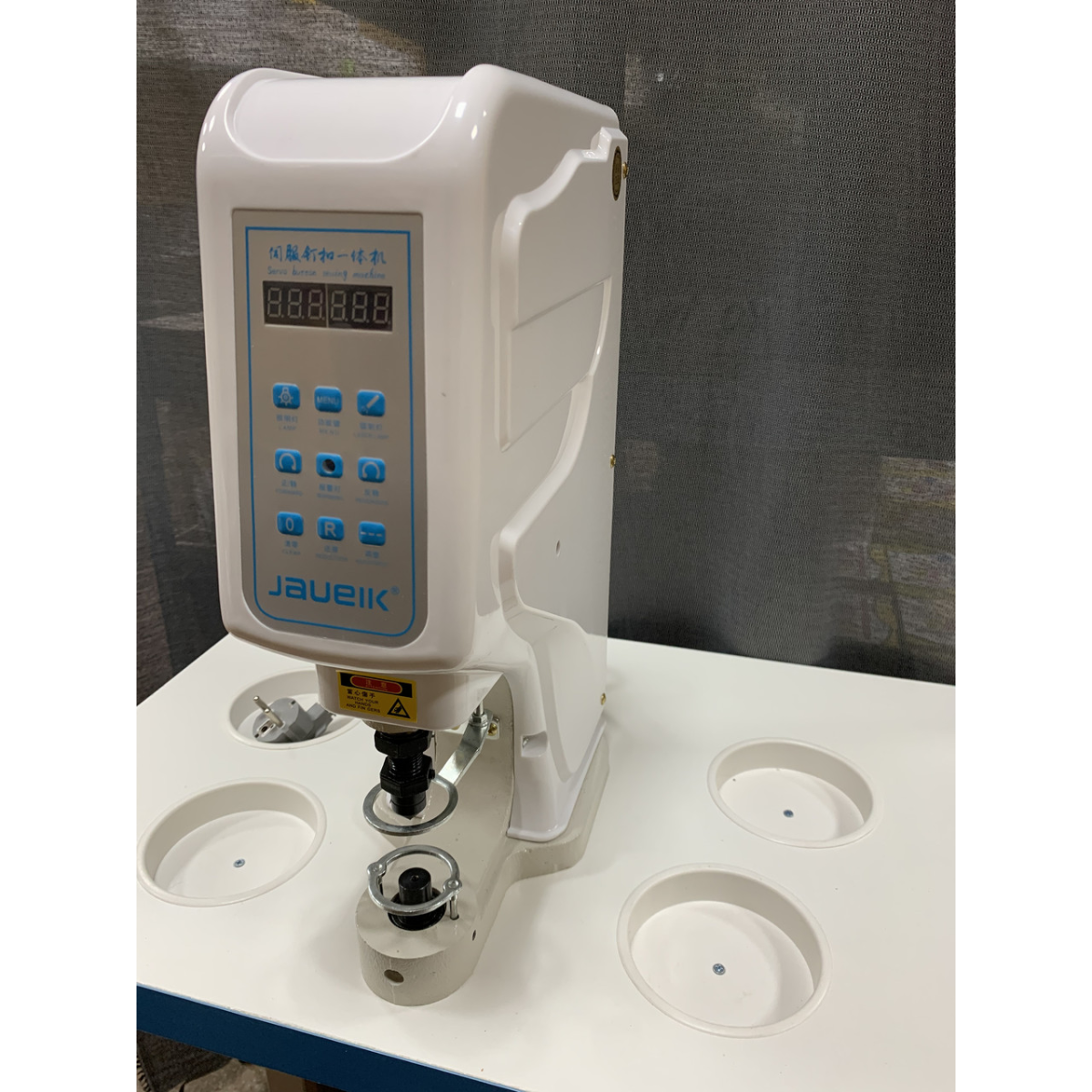 Електричний прес JAOUEIK 818 із сервомотором – сучасний пристрій, який полегшує та прискорює встановлення фурнітури на текстиль, шкіру та інші матеріали. Завдяки точності та силі натискання прес підходить для дрібносерійного та масового виробництва.